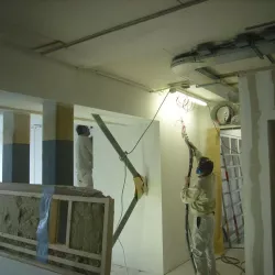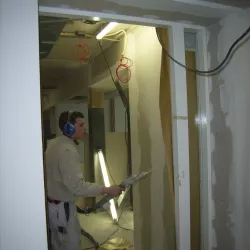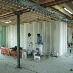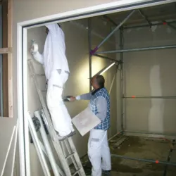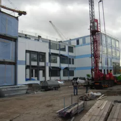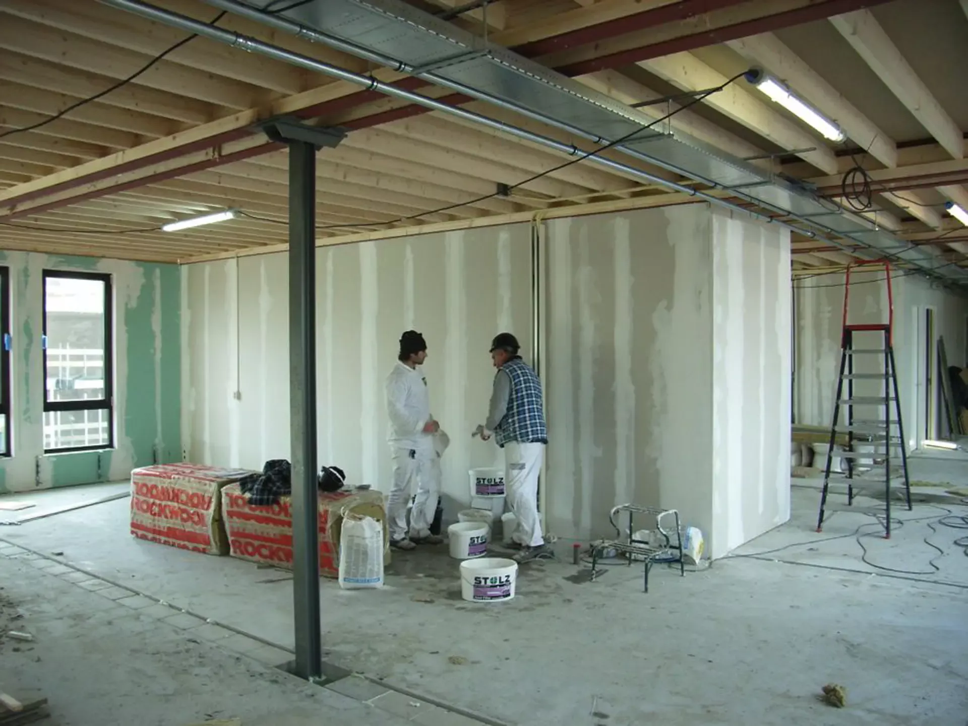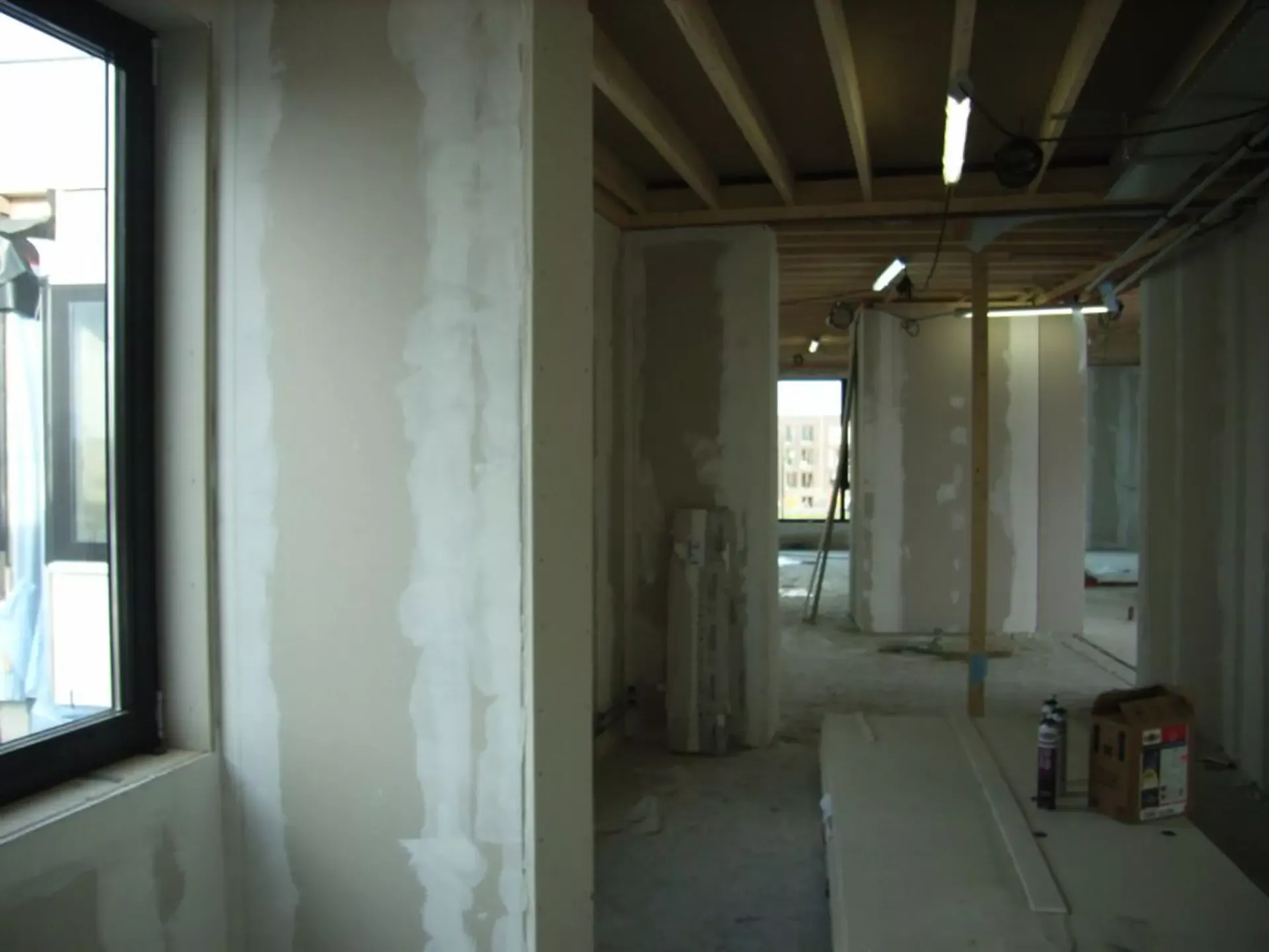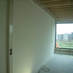 In Amersfoort is vorig jaar een nieuwe school gebouwd, en Van Amsterdam heeft de volledige afwerking verzorgd. We hebben maar liefst 13.000 m² aan wanden geëgaliseerd en vervolgens gespoten met Spack, wat zorgt voor een strakke en duurzame afwerking.
